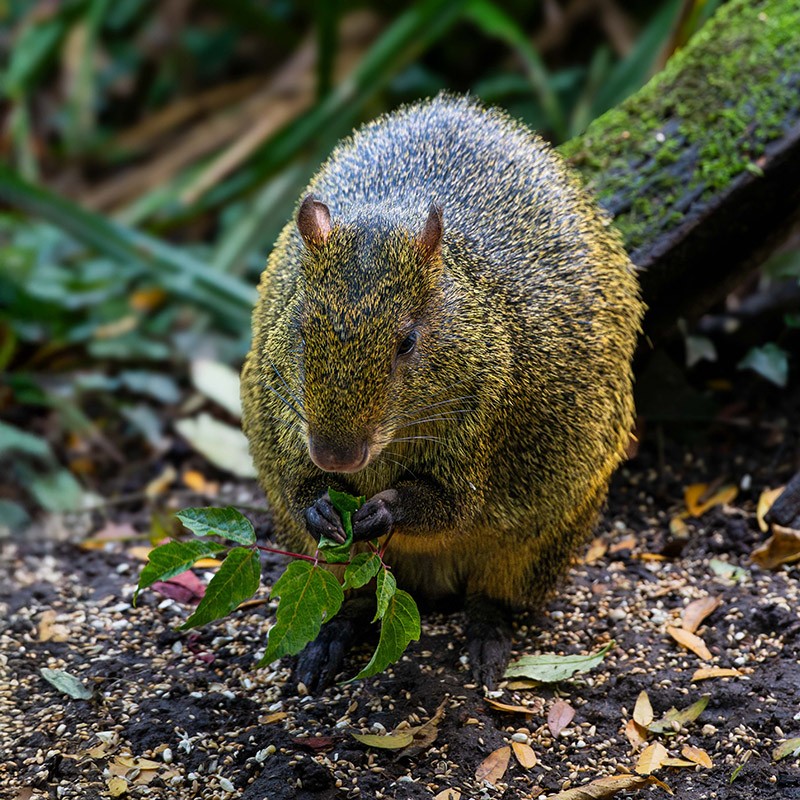 Das Aguti ist mit dem Meerschweinchen verwandt und lebt im Unterholz von Regenwäldern und Savannen in Südamerika.